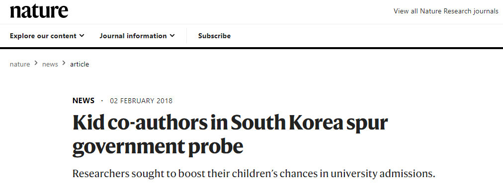 图源:全国青少年科技创新大赛官网知名医疗媒体“丁香园”指出,该项目的立意、实验设计堪比博士生科研水平。而令人惊讶的是,该小学生在实验记录本曾写下“老师们给了我一个基因,叫C10orf67,我上网搜了一下什么叫基因。”7月13日,中科院昆明动物研究所网站对此发布声明指出,“经初步核查,该获奖项目学生系我所研究员之子”,已成立调查组对此事进行深入调查。7月15日据北京时间视频报道,武汉又有两名小学生因研究茶多酚抗肿瘤获奖。资料显示,两名参赛学生当时分别就读小学三年级和五年级。当日,负责项目审核的武汉科学技术馆表示事件正在核实调查......同类事件频出后,有网友评价:“怪不得那么多硕博士最后考教资去中小学任教,本来以为人家是图编制,现在才发现这才是有学术追求的体现,教职不分大中小。”如果说“学二代”拼的都是父母,形成庞大体系的“学阀”,又是怎样一股无法撼动的势力?2015年,韩国京畿道政府接到举报:有大学教授的论文著作涉嫌抄袭。检察厅花了4个月时间突击检查了全国110所高校。发现涉嫌抄袭的教授有近两百人,除了普通的抄袭外,有的人甚至是把封面换掉,就这样作为自己的作品出版。最终包括182名教授在内,被提起严重刑事诉讼的只有74名,而其中还有三人,因为在海外深造,免予起诉。其余105名教授因为“罪行较轻”,被判处最高1000万韩元的罚款刑。按当时利率,1000万韩元折合人民币5.5万元。但是,韩国高校有个不成文规定:不会续聘被判处300万韩元以上罚金刑的教授。换言之,如果罚金数目在这之下,可能不受影响。“学二代”的现象也不乏存在,2017年底有韩国媒体曝光:82篇高水平学术论文的第一作者,居然都是中学生!调查后发现:有794篇论文和出版物存在相似问题,被调查人数也扩大到70000人。近一年的调查后,官方得出了结论:部分学者将自己和亲戚子女的名字,挂在了论文上。但其实那些孩子根本就没参与过研究。后来Nature也报道了这一事件,随即引起了世界舆论的关注。此外,募格课堂此前报道过韩国知名女明星硕士、博士论文造假事件:洪真英于2009年获得朝鲜大学贸易系硕士学位,3年后的2012年获得博士学位。但是,其硕士学位论文《通过韩流看文化内容产业动向的研究》在韩国查重网站"copy killer"上显示的重复率高达74%。最重要的是,洪真英父亲是朝鲜大学教授协议会长,目前仍为朝鲜大学的名誉教授,因此通过此事件,洪真英的父亲也将被出查处。此争议经过网络发酵后,洪真英并没有承认论文抄袭,而是声称在她读书时期论文大量引用文献是当时的惯例,但为了平息争议,她表示将返还硕士和博士学位。2020年12月末,洪真英曾经就读的朝鲜大学公开表示:最终判定洪真英硕士学位论文为抄袭,正在办理取消学位的相关手续。朝鲜大学前工商管理教授也表示:“洪金英的论文是99.9%的假货,我根本没在课堂上见过洪真英,而且她父亲是学校的教授,肯定是私下帮助了。”“学二代”不分国界,这样层出不穷的“内部人”作弊事件,既严重损害了教育公平,也给“被内卷”的学术圈旁人带来了难以平复的伤害。但不得不承认,在合乎规则的情况下,父母是硕士、博士学历,孩子更具备走进学术圈的优势,这不仅是知识的熏陶更是眼界的传承。作为普通人,难以改变大环境的前提下,其实我们只要能达到自己的理想,也就是最欣慰的事情了。https://www.nature.com/articles/s41562-022-01425-4