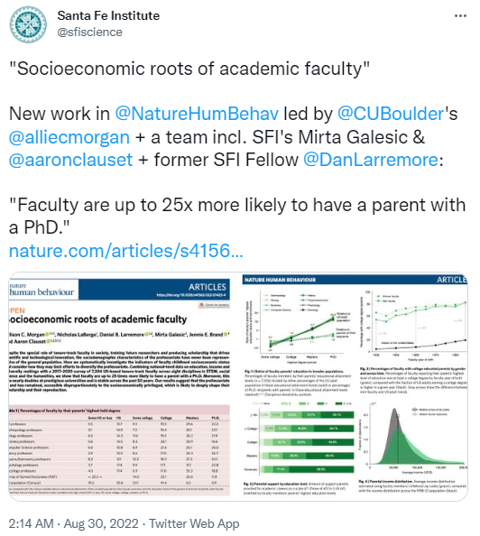 当博士们削尖了脑袋竞争的时候,其实大家从出身接受的资源就千差万别了......近日,美国科罗拉多大学的研究团队发表了一篇最新研究论文。结果表明,在美国学术界中,近四分之一 (22.2%) 的教授表示他们的父母中至少有一个拥有博士学位,甚至3.7%的教授父母双方都拥有博士学位。堪称学术圈“拼爹内卷”了