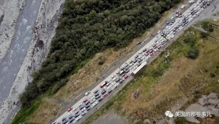 《NEXTA》官方推特分享美国Maxar科技公司传来的卫星画面,在俄罗斯和格鲁吉亚边界的Verkhny Lars检查站,公路上就有一排超长的车阵。