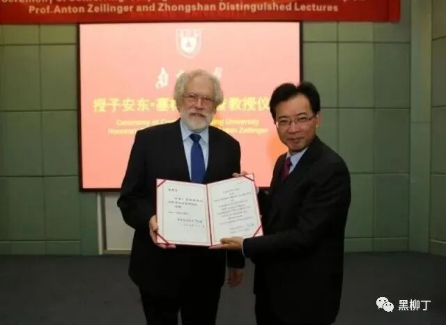 在2016年11月3日,ANTON ZEILINGER教授访问南京大学,时任校长陈骏会见来宾。双方就量子物理等多个领域的合作开展深入探讨,并签署《南京大学-奥地利科学院合作备忘录》。当天下午,授予安东·塞林格院长南京大学名誉教授仪式暨钟山论坛学术报告在鼓楼校区举行。![]()