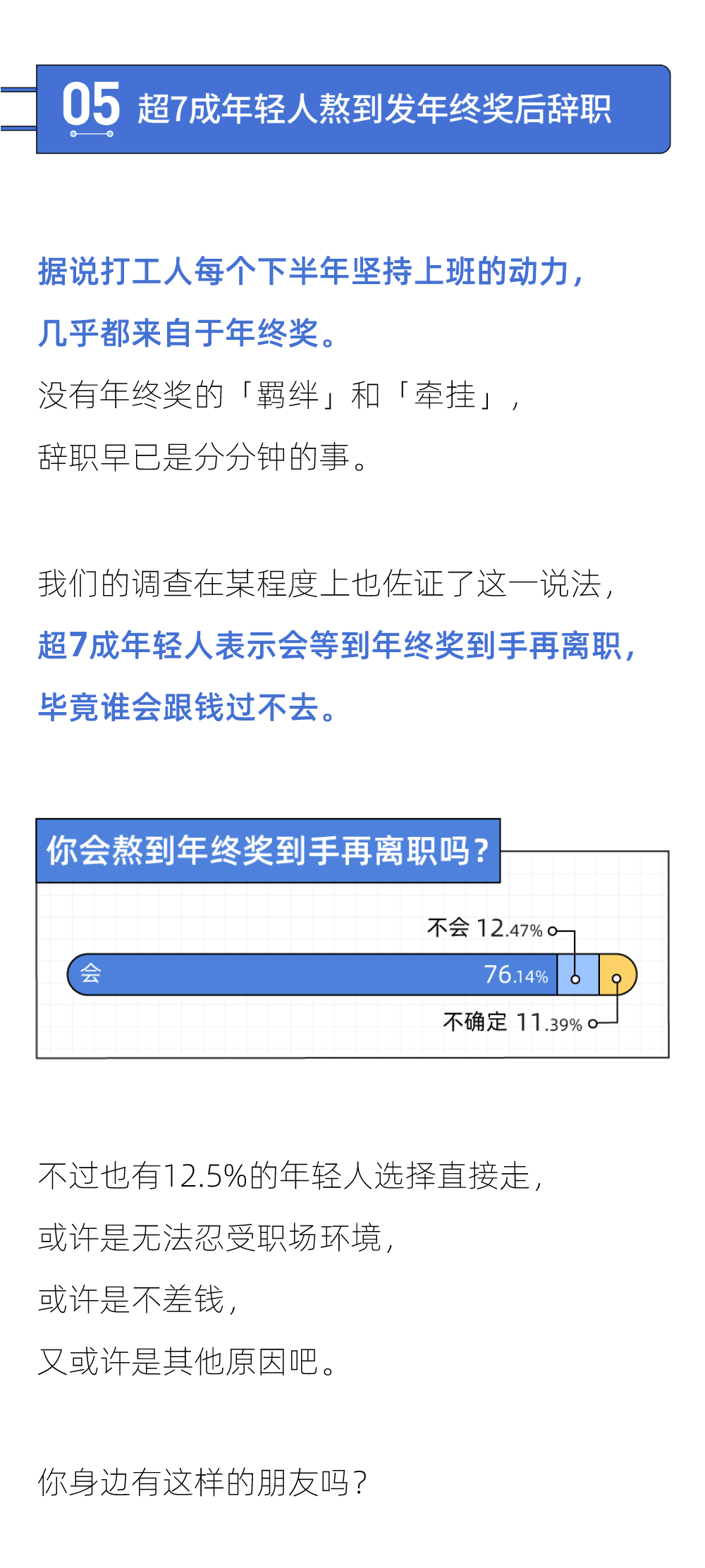 年终奖对于职场人的意义,大概远超出了金钱本身,多了许多附加意涵。在一年的尾声,打工人或许苦苦守望,盼望给忙碌奋斗一年的自己些许慰藉;或许焦急等待,期待「熬到」发年终奖,潇洒地跳槽离开;又或许,因为种种原因,年终奖无奈「泡汤」,自己面临着「去」与「留」的两难境地。