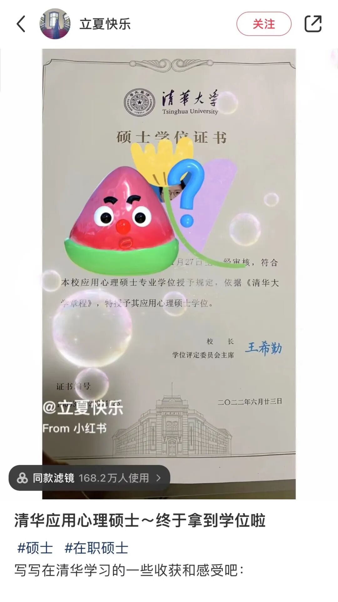 杨蕾在小红书分享自己在清华读MAP的感悟