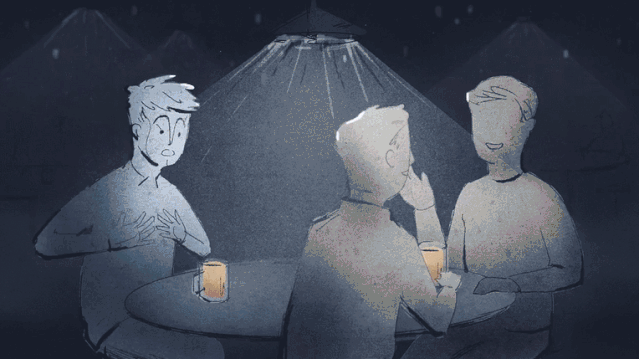 男主努力想获得他人的注意——和同事出来聚餐,尽力表现,可无人在意。