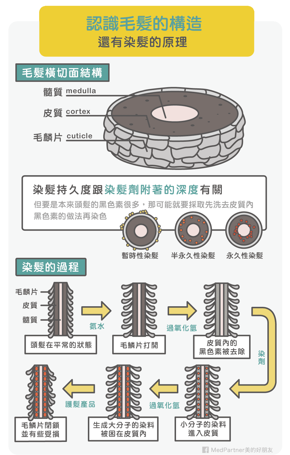 头发构造及染发原理/来源:facebook@美的好朋友