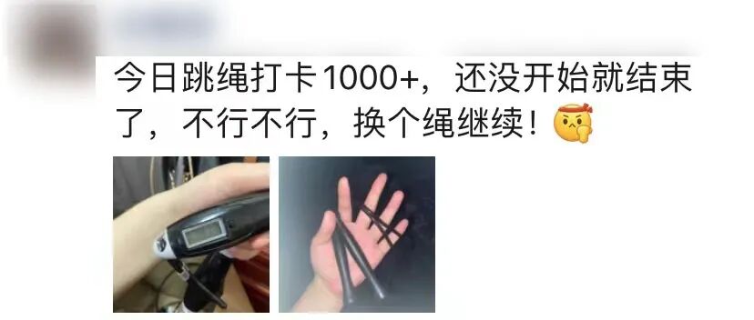 1000个起步、2000个洒洒水,才是跳绳博主们的常规操作。连风靡全网的“跳绳打卡”,也逐渐开启“疯狂卷王”模式:从2000到4000、6000,如今又“升级”到10000+的挑战。许多跳绳话题下,“15分钟打卡2400个”“每天4000坚持半年”“挑战连续跳绳1小时”都是稀松平常。逐渐变味的跳绳,让热衷运动的年轻人不知不觉间成了KPI的“傀儡”。究其原因,被“跳绳1个月瘦20斤”“跳绳半年后我重生了”等词条蒙住双眼、疯狂上头的人们往往忽略了:20000个打卡也已经在路上……