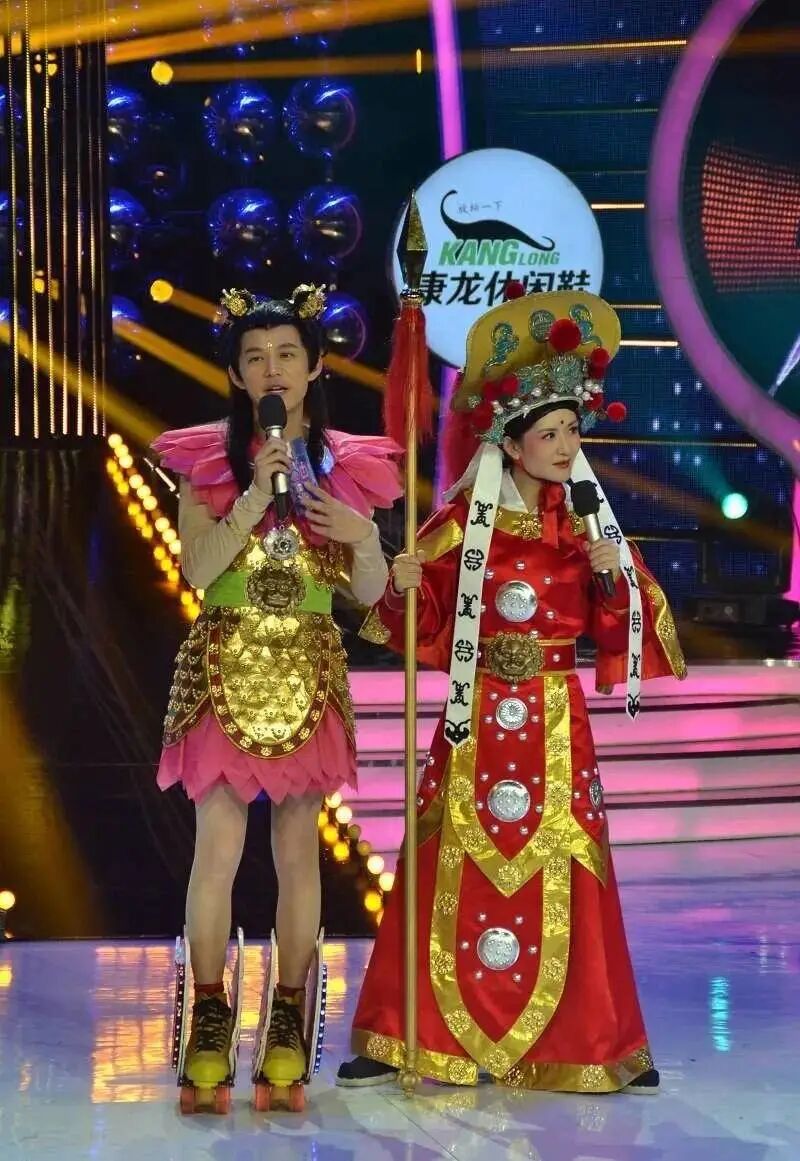 扮演哪吒的何炅,脚踏轮滑版“风火轮”,一句“我是一个官二代”的开场白,逗笑全场。
