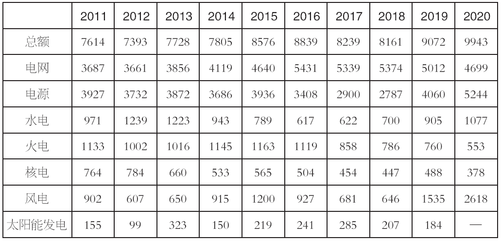 表5-10 2011~2020年全国电力投资情况(单位:亿元)