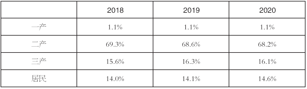 表5-5 2018~2020年全社会用电结构