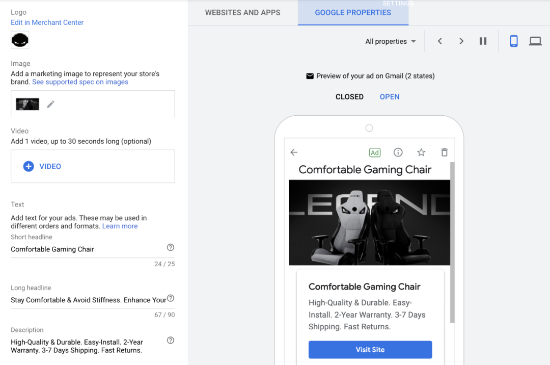 (Google 智能购物广告示例)