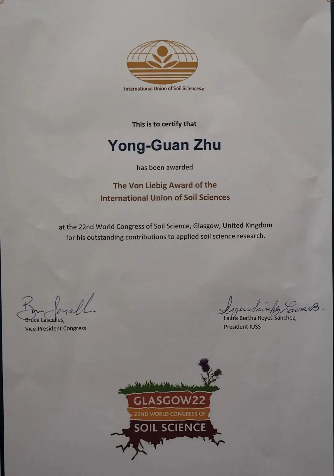 8月3日,在英国举行的2022年国际土壤科学联合会李比希奖颁奖仪式上,朱永官成为唯一获奖者,也是首位获此殊荣的亚洲科学家。