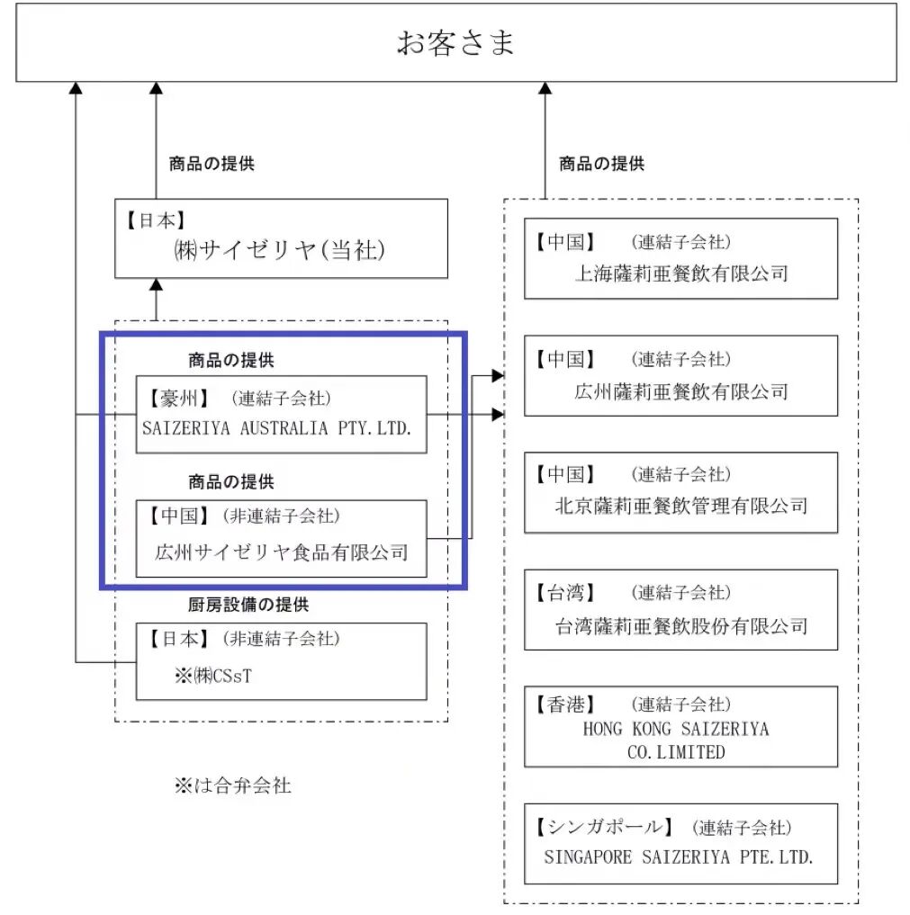 首先,在供应链上,萨莉亚采取的是“自建供应链+中央厨房”的模式,所有店均为直营,由公司统一配送半成品,后厨只需进行简单处理即可,号称“后厨没有一把菜刀”。原材料来自自建农场,上游产品大多也是自有品牌,主要由萨莉亚设在澳大利亚和中国广州的两家子公司进行生产。