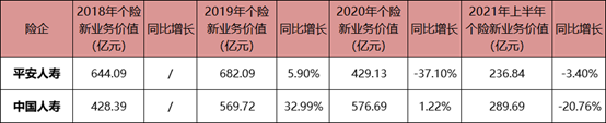 虽然表面上看,中国人寿2021年上半年个险销售人力减少的更多,但殊不知,平安人寿一直引以为傲的“新业务价值”指标——即平安人寿在低利率环境下仍能维持利润高增长最大的武器,正在被中国人寿赶超。