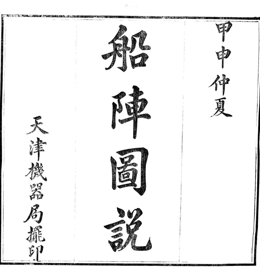 当然了,这并不是说晚清的海军教育,完全没有触及近代海军思想和海军战术。部分的引入还是有的。1870年代,江南机器局翻译有《水师操练》与《轮船布阵》两书;1884年,天津船政学堂也翻译有《船阵图说》一书。《船阵图说》收录有20余种编队阵法与100余种变换方法。是天津水师学堂和北洋海军实施战术训练的基本教材。