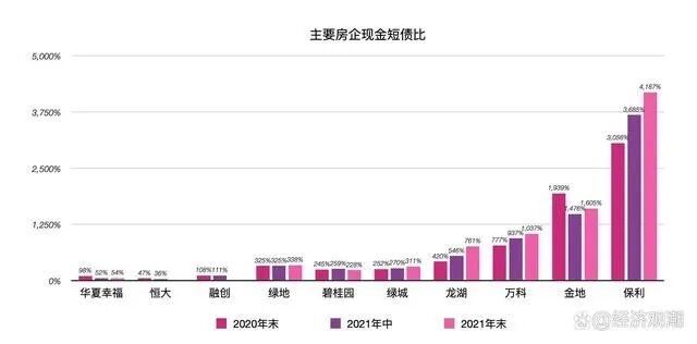 “现金短债率”指标是央行的三道红线之一,指的是房企现金和短期贷款的比例,数据越高,代表一年内的还款能力越强。