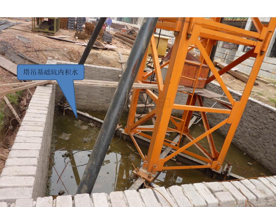 5. 检查塔吊基础,必须符合规范要求,避免连根吹倒的情况。