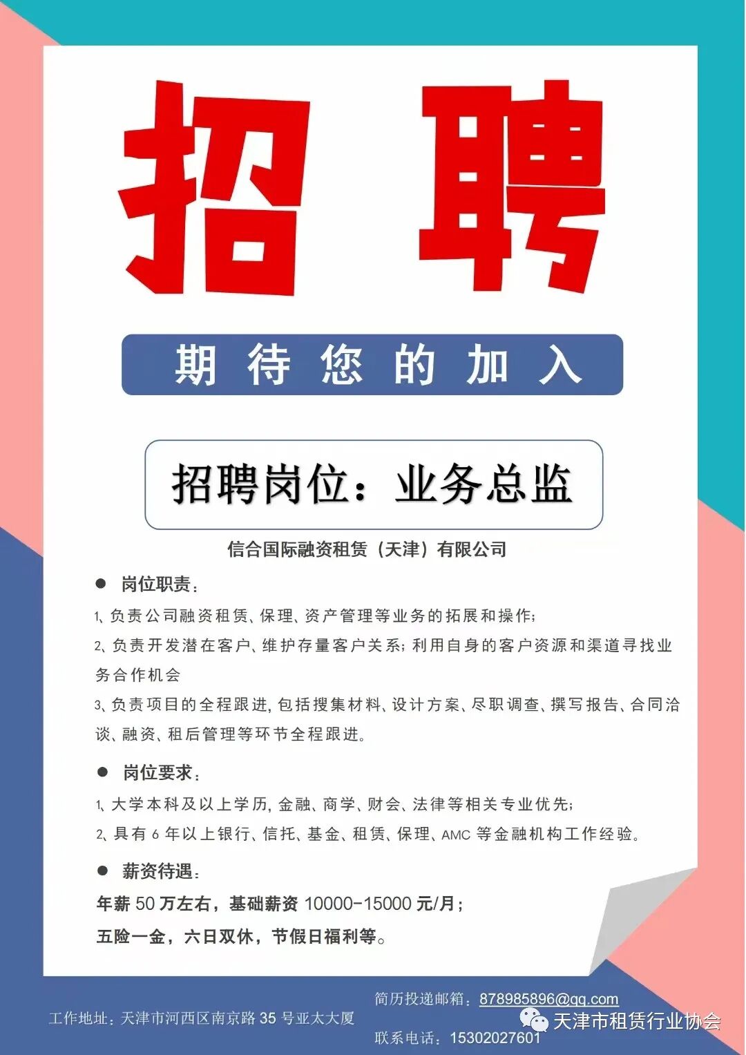 信合国际融资租赁(天津)有限公司成立于2015年10月28日,系经天津市商务委员会批准成立的外商投资企业,由哲瑞网络科技有限公司和英拓数码电子有限公司共同出资设立,实际控制人为商业网点建设开发中心,注册地为天津自贸区东疆保税港区,注册资本5000万美元;公司总部座落位于天津市河西区亚太大厦2103。股东英拓數碼電子有限公司YINGTUO DIGITAL ELECTRONIC LIMITED成立于2014年3月19日,注册地为香港。融资租赁,租赁,向国内外购买租赁资产,租赁资产的残值处理及维修,租赁交易咨询和担保。* 投递方式:点击下方阅读原文查看详情