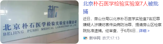 今天,北京朴石医学检验实验室7人被批捕的消息冲上热搜。