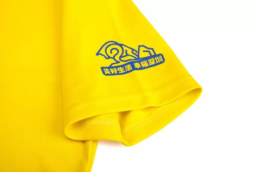 2018第十八届磨房深圳百公里纪念服,使用本届活动的主题色调,以明亮吸睛的黄色为基础色调,撞入蓝色的logo字样,形成强烈的反差,拥有极高的识别度,给人以强烈的视觉冲击力。纪念服以磨房深圳百公里为主题,结合深圳市花——勒杜鹃,整体风格清新自然,简洁明快。