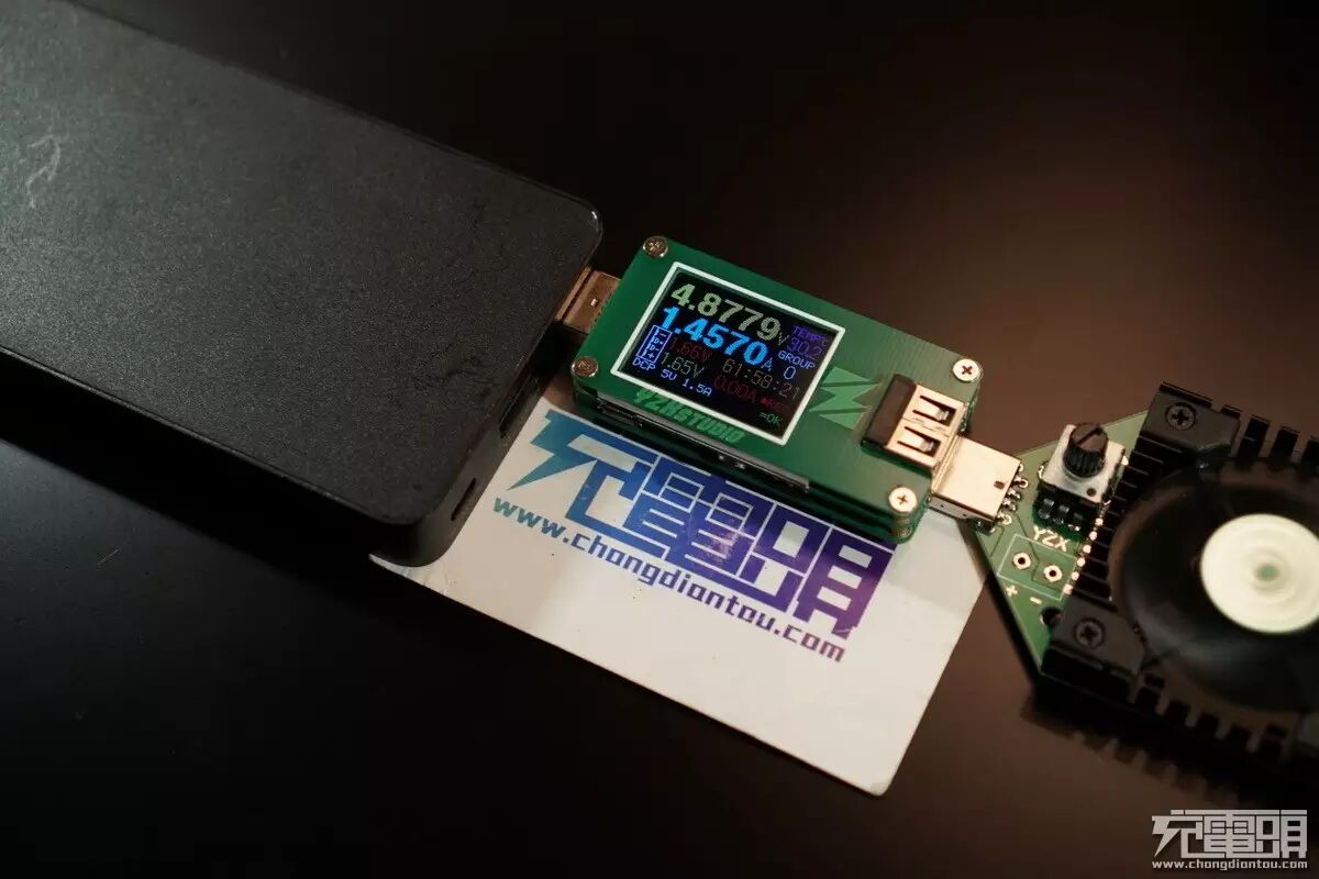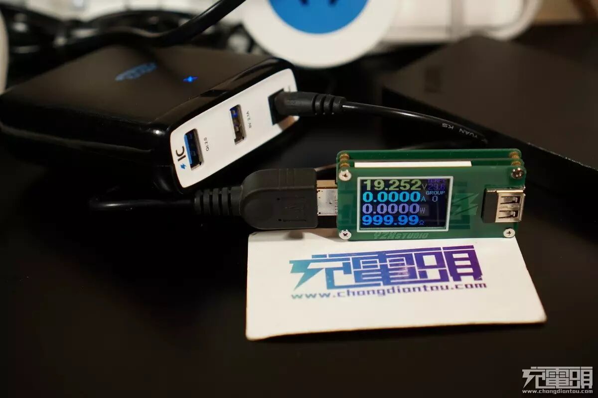 现在用JDB 65W电源圆口输出,这个电源提供了三个输出方案,5V口, QC口,圆口19V,转接以后彩表显示空载19V。