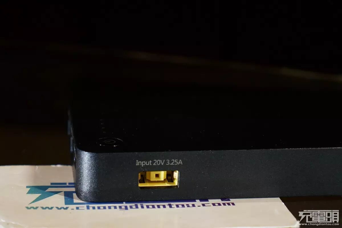 侧面还有一个ThinkPad 方口输入,可以接受20V3.25A的快速充电,这个已经超越了市场上绝大多数的产品了,即使高通Qucik Charge快充也无法与之媲美。