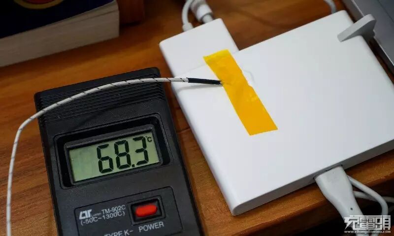 测试过程中,发现这货温升比较快,于是试试:给macbook pro供电时,温度急剧飙升,10分钟左右,测得68.3摄氏度时,仍在极其缓慢的上升,手摸已经无法忍受。