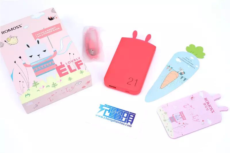 没想到你是这样的兔子!无论包装还是产品,细到包装盒内充满情怀的萝卜卡片,你都想不到它来自罗马仕。罗马仕移动电源产品的体形不同但是元素基本不变一眼就能认出,而名称为LOVELY-ELF充满兔子元素的移动电源想必肯定是出自女产品经理之手,太!粉! 嫩!了!