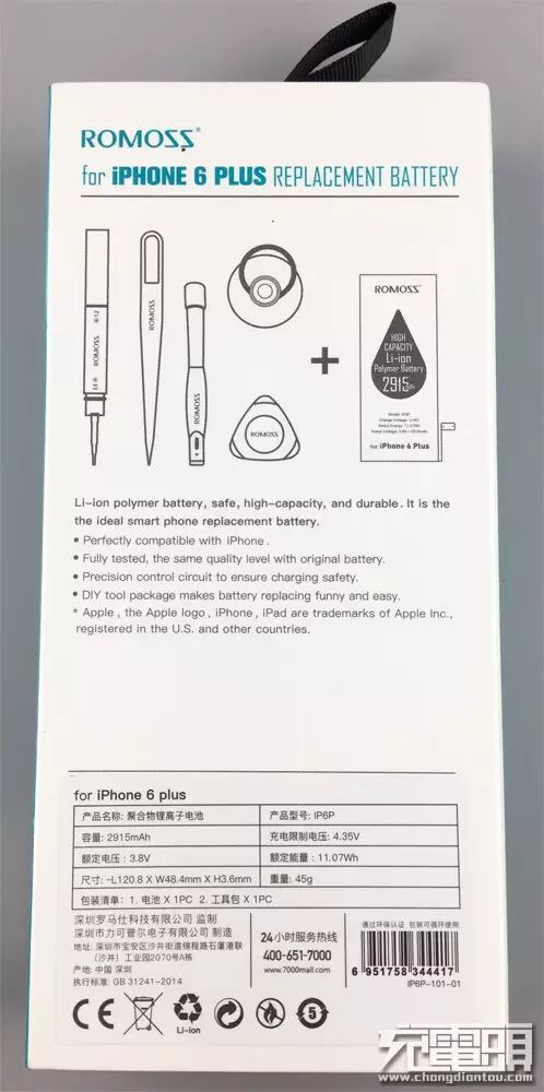 我的iPhone 6 Plus 电池已经用了2年了,基本一天2到3充,天冷之后更加不济了,这次有幸参与充电头网的电粉试用活动,下面为大家带来ROMOSS罗马仕新款 iphone 6 Plus替换电池套装的上手体验及手机拆解替换过程展示。