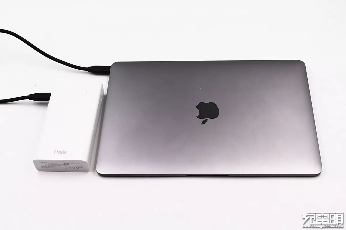 使用USB-C口给New MacBook充电,海尔HY003移动电源恰好可以充满New MacBook一次,用来做笔记本电脑的备用电源也很合适。