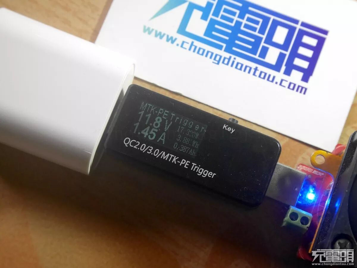 10、爱国者QC01电量50%:快充握手成功,12V充电。