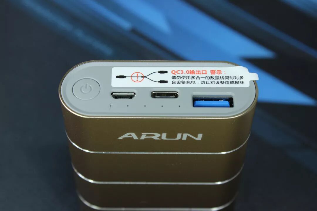 一个Microusb输入口,一个type-c输入输出口,一个5vusb输出口,qc3.0输出口贴有警示标志,不允许用多合一线,以防高压对非qc3.0设备造成损害。
