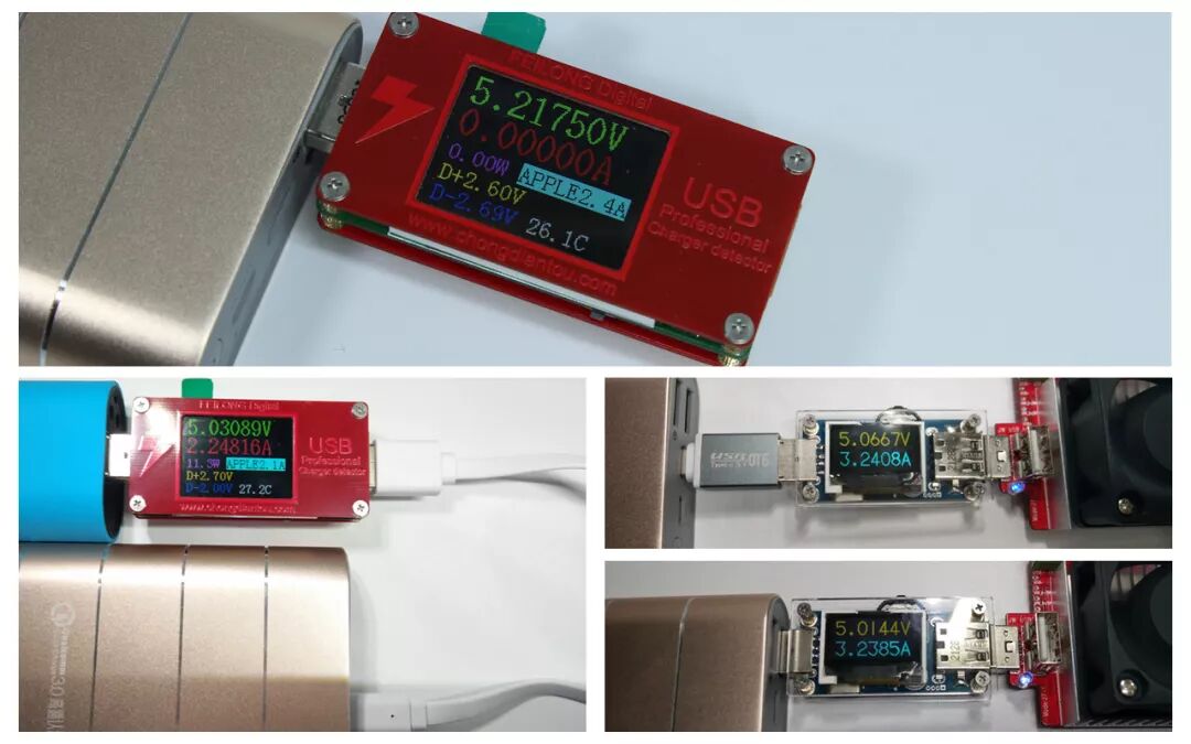 空载电压,充电电流,c口输出电流和5vusb口输出电流, 只能5V充电不是太爽,不过ip5318是支持高压输入的,只是海陆通没有加上握手芯片,但是输出还是相当给力的,最大电流下,电压依然没有太大下降。