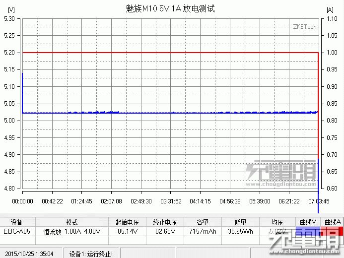 5V1A 放电效率,开始电压5.14V,带载后保持5.02V,波动情况基本没有,十分稳定。