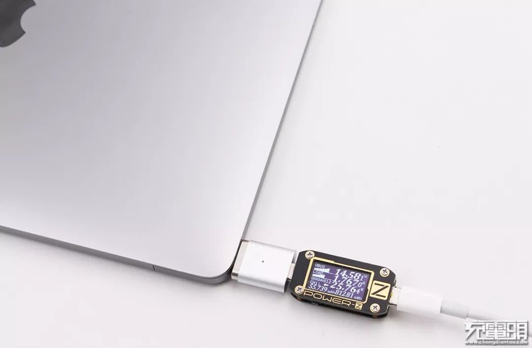 为了验证这款磁吸线对充电速度到底有无影响,小编找来了两台苹果笔记本电脑。分别使用苹果三款原装充电器、充电线对其充电,在设备拥有相近的电量时,对比使用磁吸连接器和未使用磁吸连接器的充电情况(注:设备在充电过程中,电压电流处于不断波动状态,以上数据为均值)。