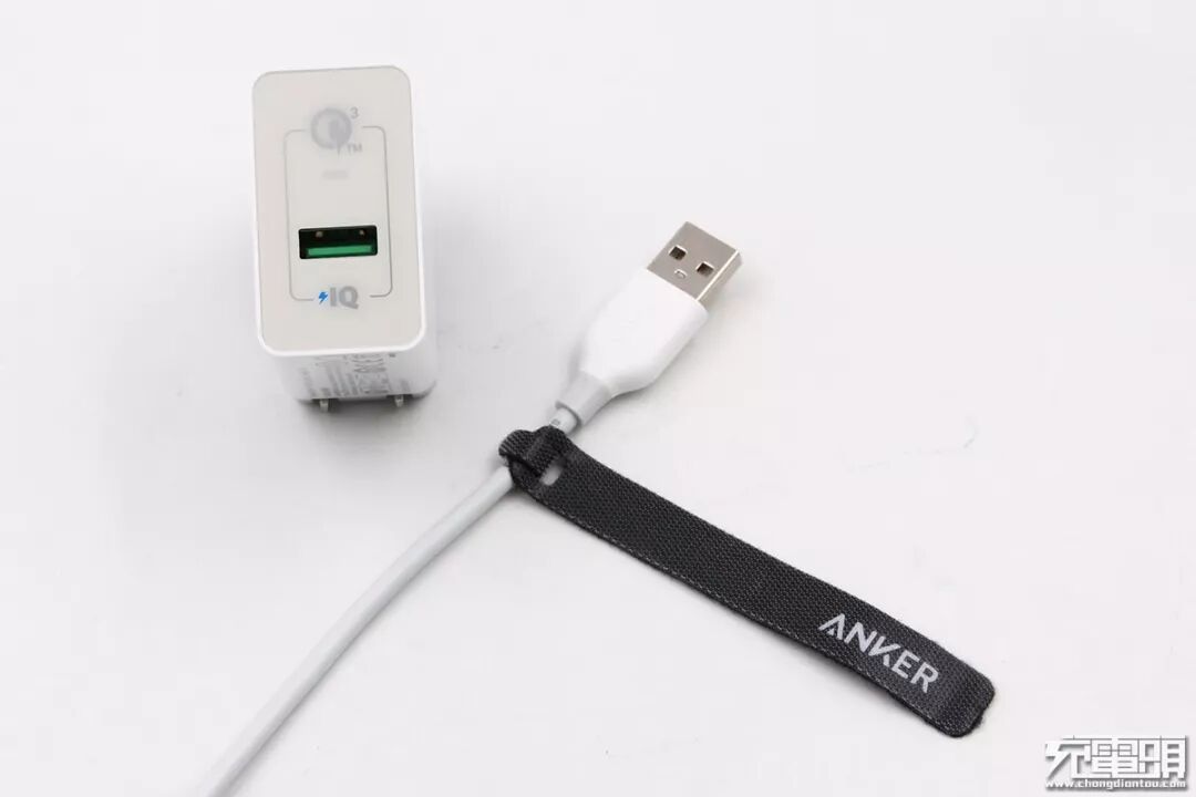 Anker这条充电线的用料比较足,线径粗并采用了Anker数据线惯有的水滴设计,抗弯折能力强、耐用。值得一提的是Anker标配的充电线缆附赠了一个魔术束线带,比较贴心。
