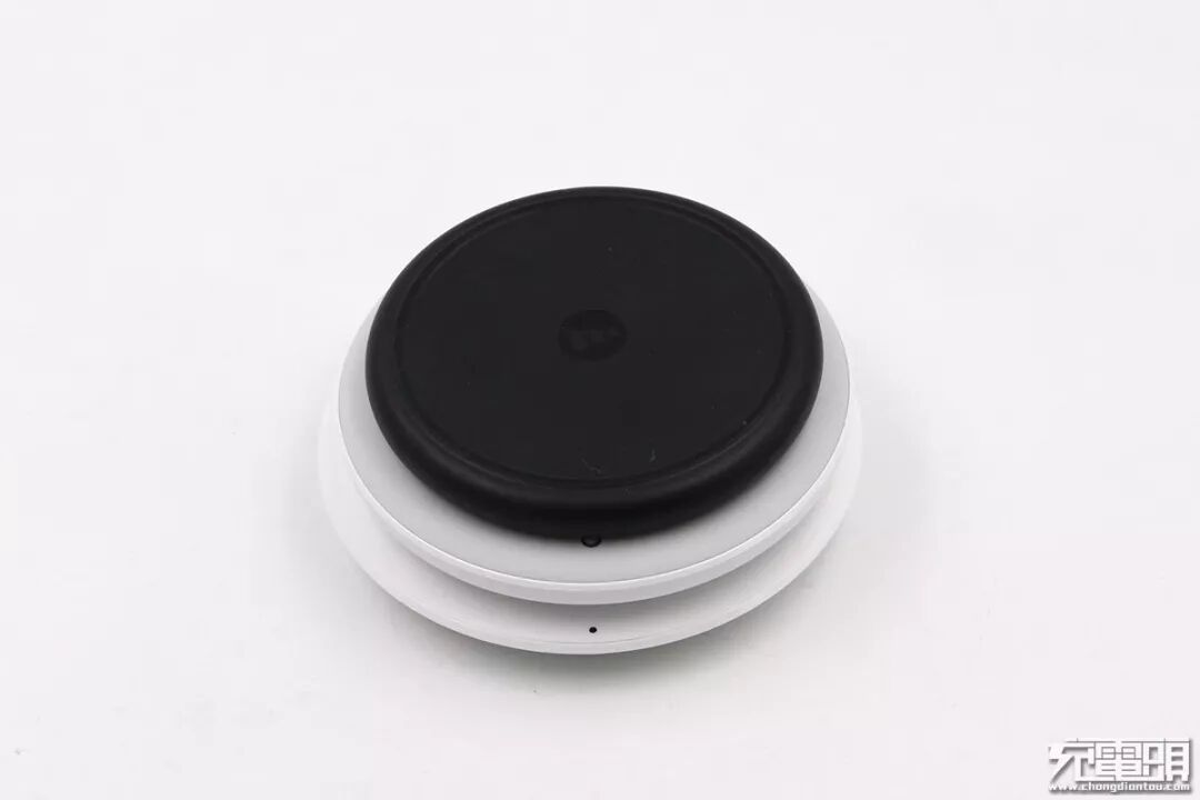 无线充电器主体部分,三款产品均为圆饼状外观。Mophie为黑色外观,体积相比另外两款稍小,周身采用软质橡胶材料,所以无论怎么拿在手上,都有类肤触感;Belkin为纯白色面板,也采用了类肤材质,并在中间加有一圈软质硅胶防滑垫,边缘处为小圆点为状态指示灯;Anker主体采用灰白配色,正面是一整块类似硅胶材质的防滑软垫面板,呈浅灰色,摸上去同样有亲肤手感,状态指示灯也设计在边缘处,类似“句号”的形状,辨识度更高。