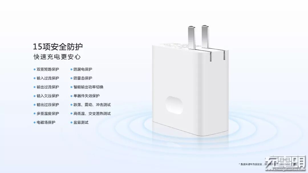 产品采用了包括双重短路保护、防漏电保护、输入过流保护、输出过压保护、防雷击保护等在内的15项安全保护功能,快速充电更安心。