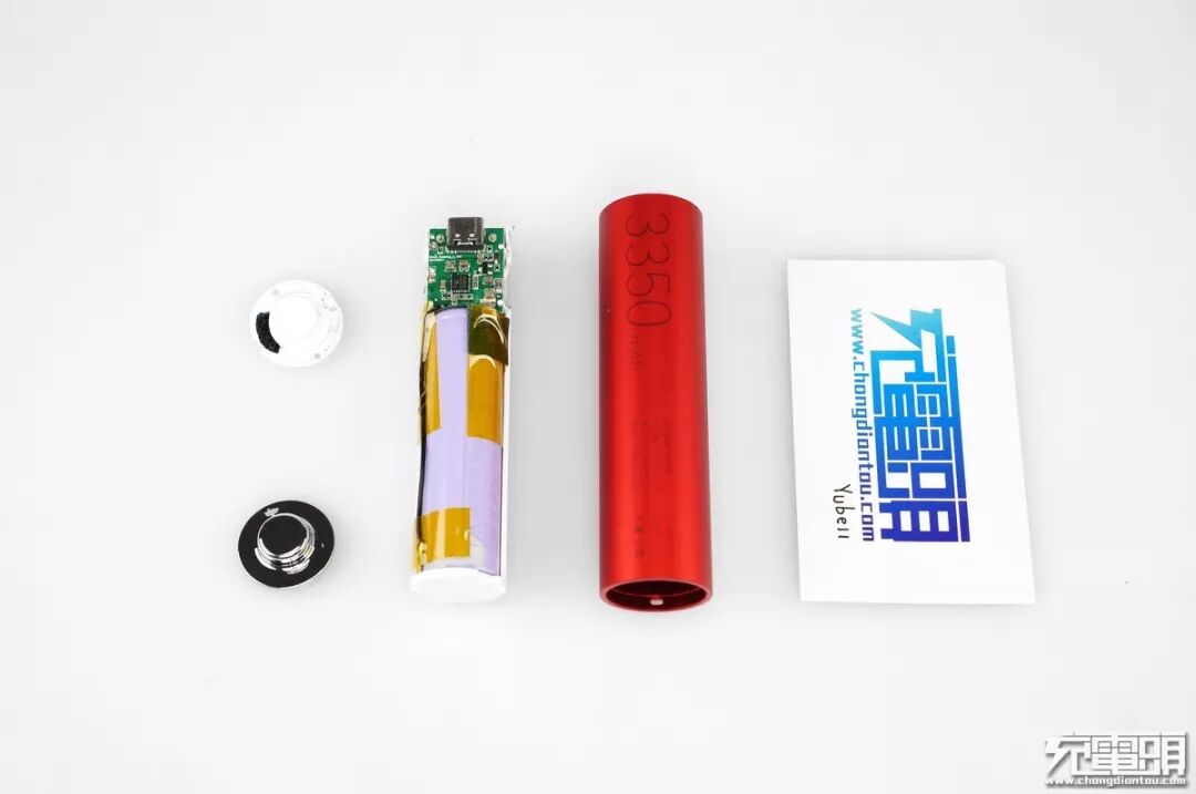 二、坚果“电池形电池”移动电源拆解把电池的“正极”盖帽挑起后可以看到里面白色的限位拉紧盖板,两颗十字螺丝镶紧。
