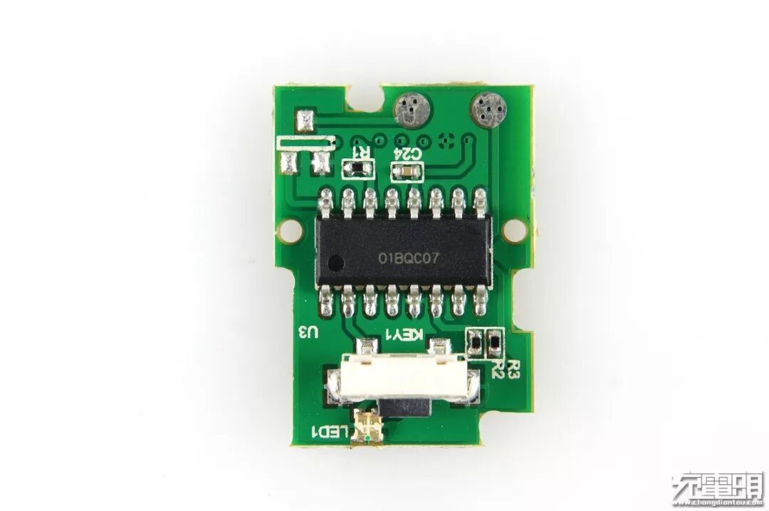 副PCB正面,单片机、电量激活按钮、3色LED。