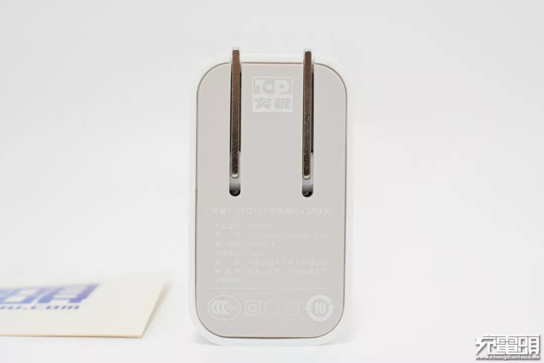 这款突破3USB口充电器实际为青米同款充电器的贴标产品,外观、性能均一致。3口输出,最大15W,支持Apple2.1A、DCP和三星5V/2A协议,适合苹果、安卓非快充手机和平板使用,整体表现与小米USB插线板类似。