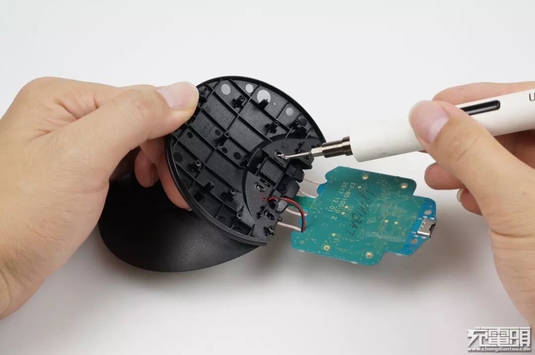 翻开PCB,把底座与立板连接的十字螺丝拧掉。
