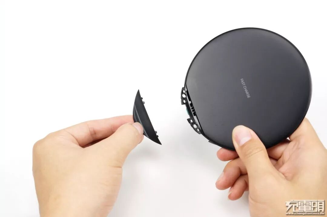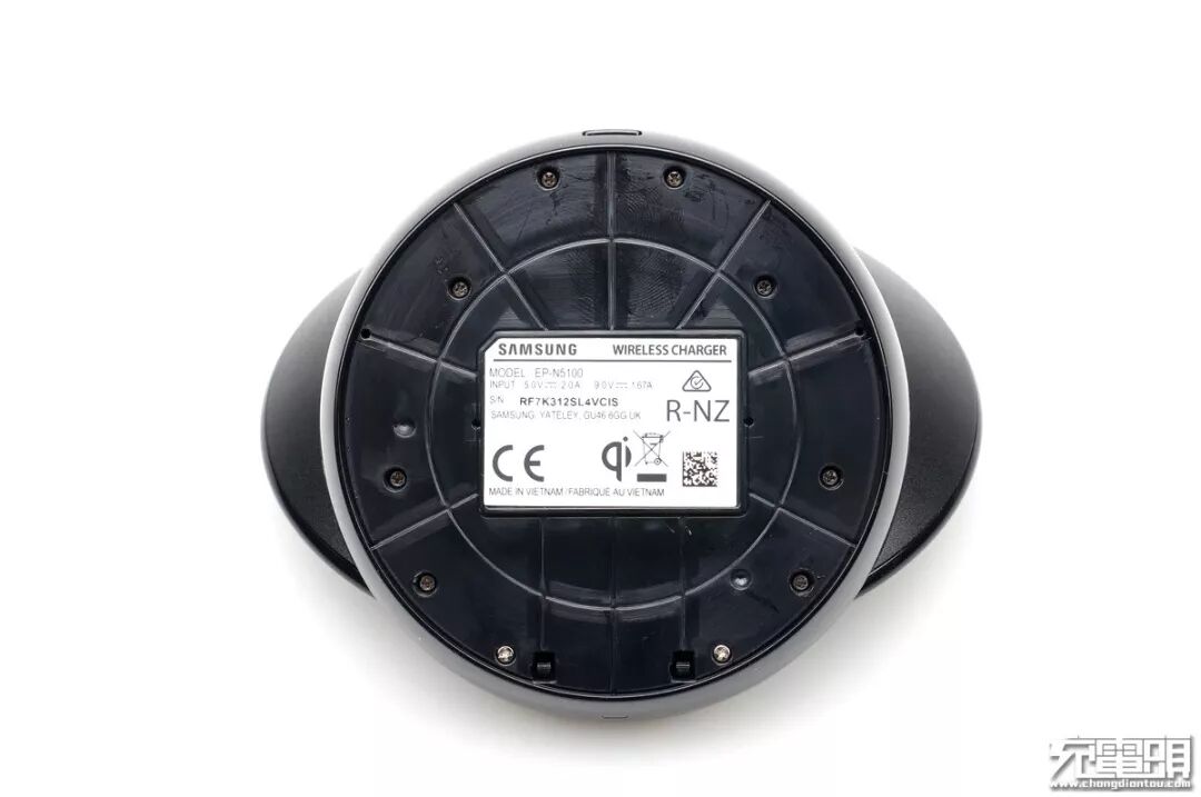 三星无线充电器已经出到第五代,从第三代开始这个圆形扇贝造型ID就沿用至今,一眼就认出这是三星无线充电器。