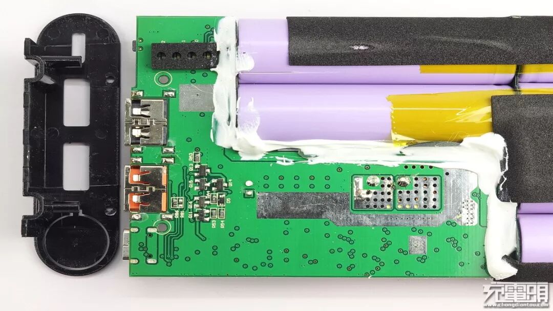 电芯与PCB之间有青壳纸加强绝缘。