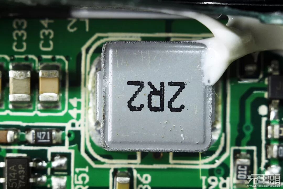 大功率电感,绕线十分的粗壮,强大功率的保证。