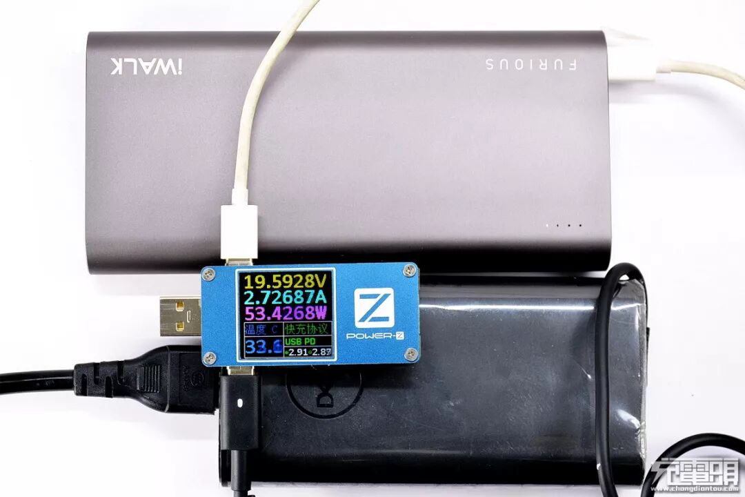 使用 DELL 90W PD 电源,Power-Z FL001 SUPER显示iWALK F20P输入功率达到了可观的53.4W。