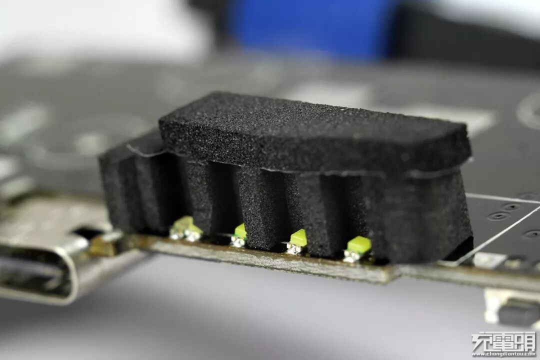 LED电源指示灯处黑色泡棉间隔防止串光。