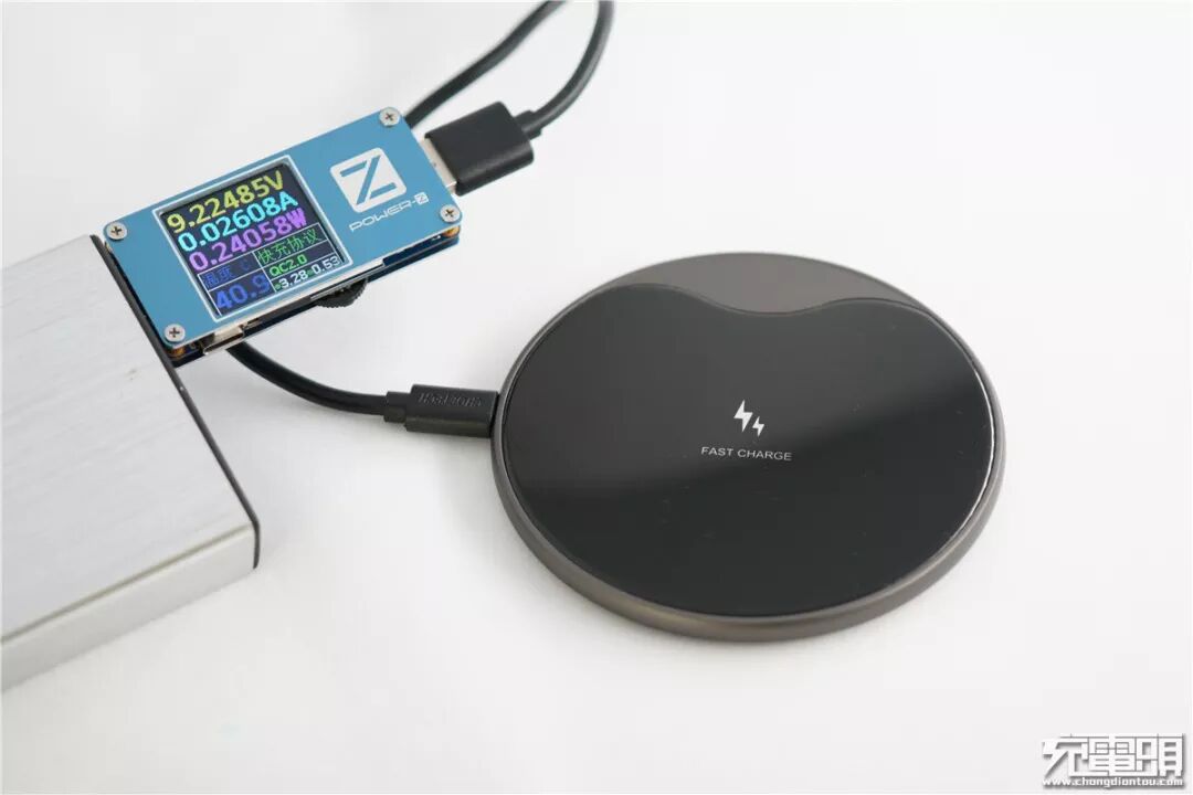 接上QC3.0适配器,使用ChargerLab POWER-Z FL001 Super测试仪测得无线充的空载电压档位为9.2V。