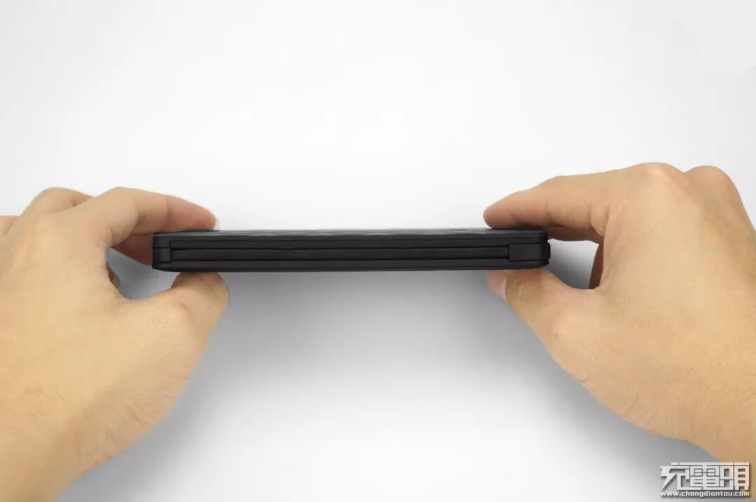 软包电池扁平型的身材握持感还算不错,壳体表面菱形凹凸纹路哑光类肤处理。