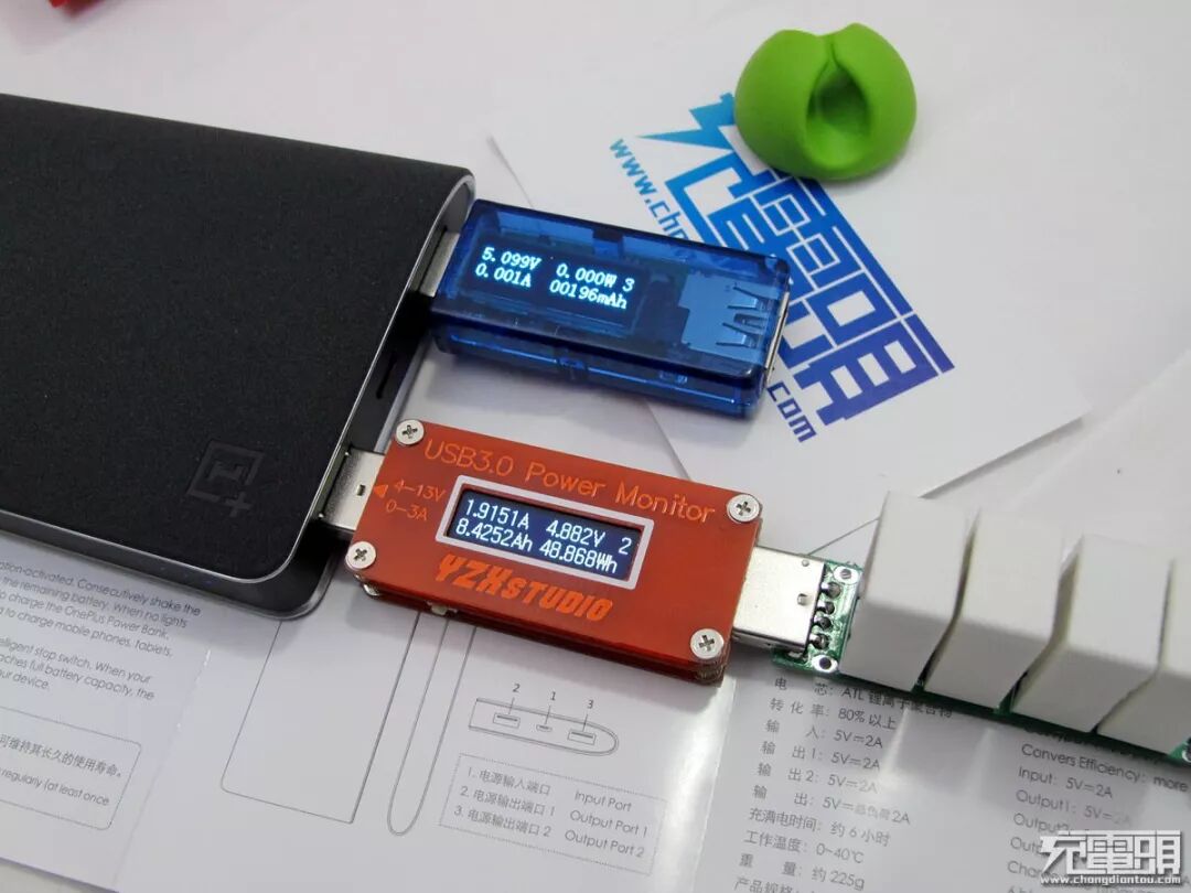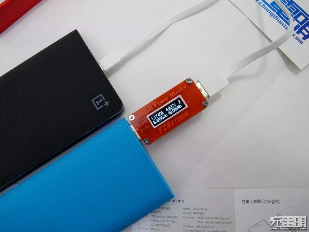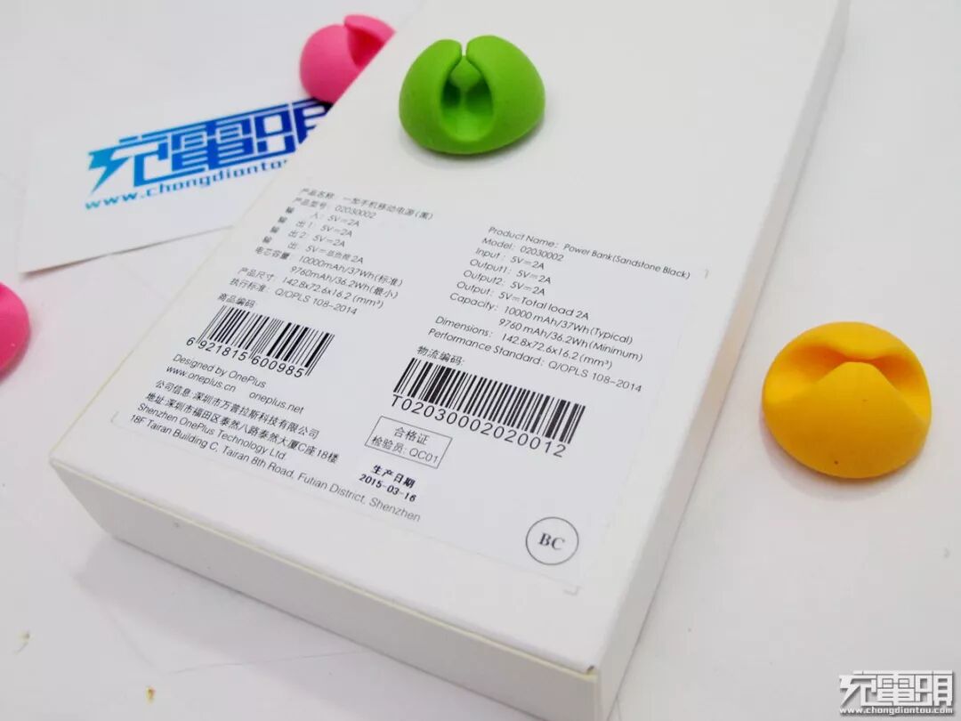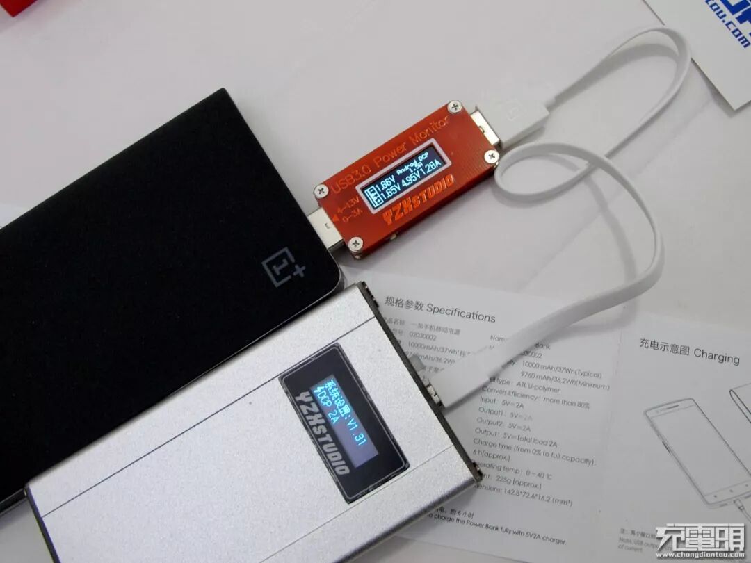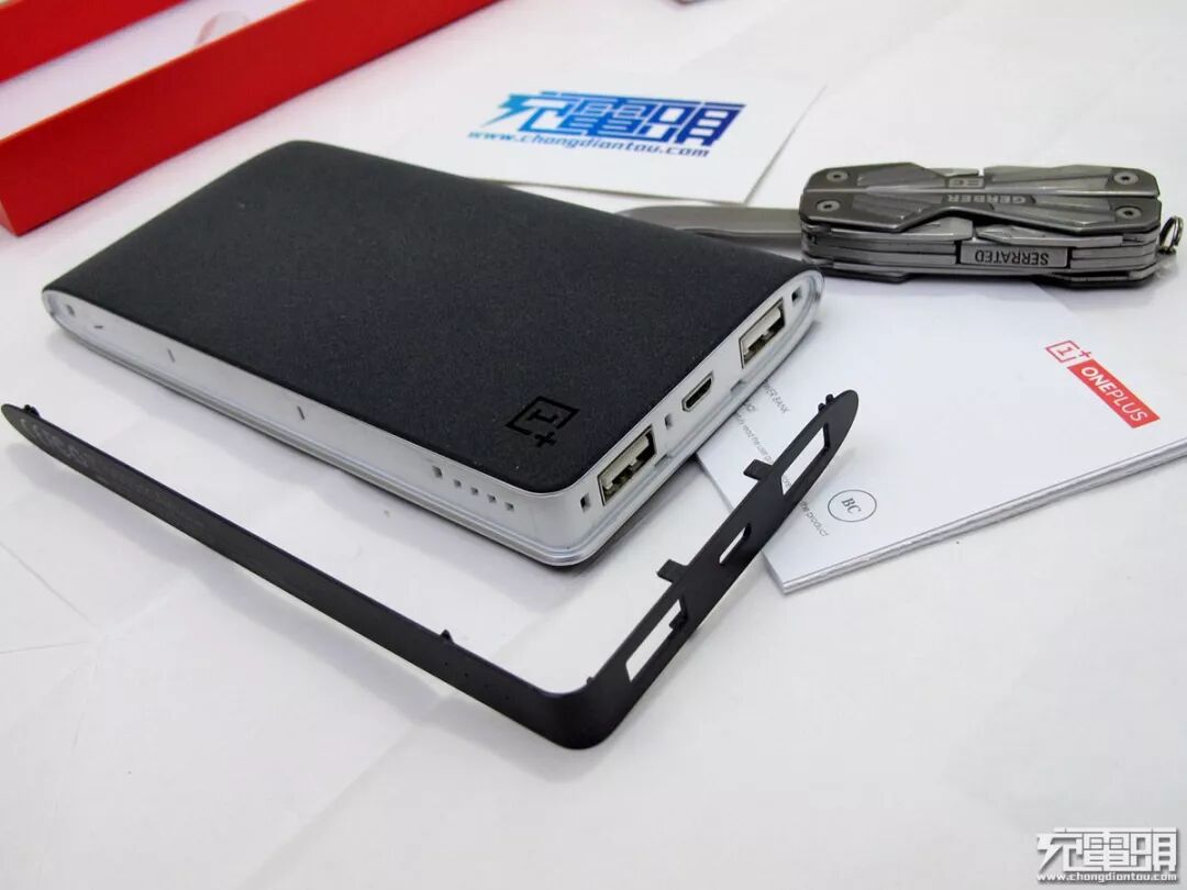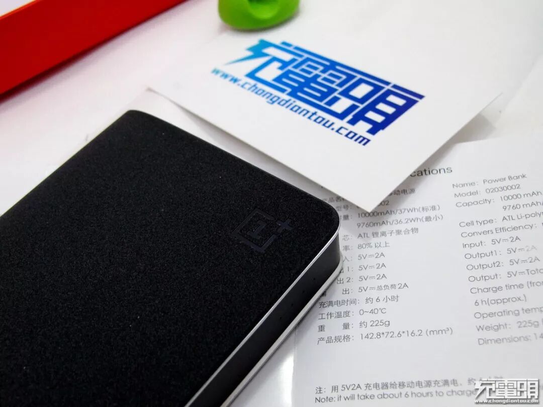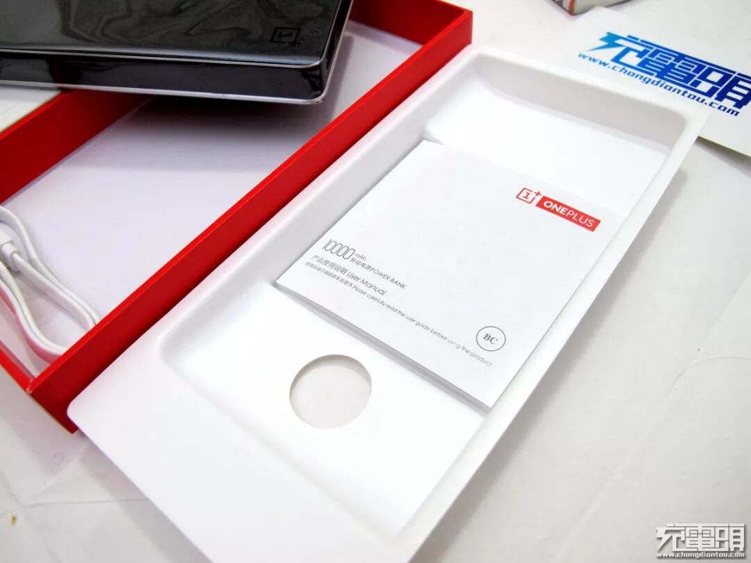 本移动电源唯一的配件是充电线一根,上面印有 1+ LOGO。