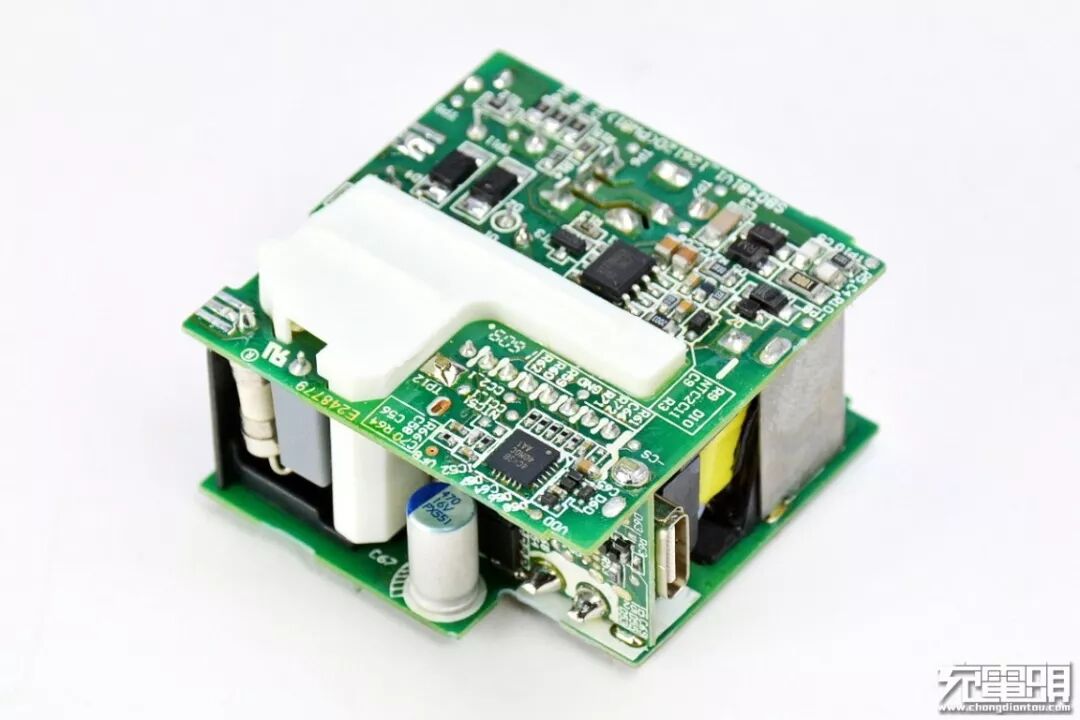 取出充电器内部PCBA模块,其中一块PCB板子上有镂空设计。