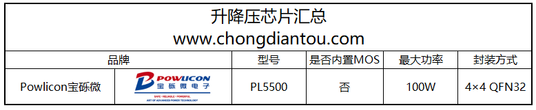 宝砾微专注于为用户提供创新性的、高效能、高性价比、高集成度的电源管理IC。团队在充电管理以及相关市场有多年的累积及耕耘,给用户提供了领先于市场的解决方案,并且与国内外领先的代工厂和封装厂商都有良好的合作关系。目前宝砾微已推出一款适用于移动电源的高性能Buck-Boost芯片PL5500,该芯片采用4×4 QFN32封装,外置MOS,最大输出功率可达100W。